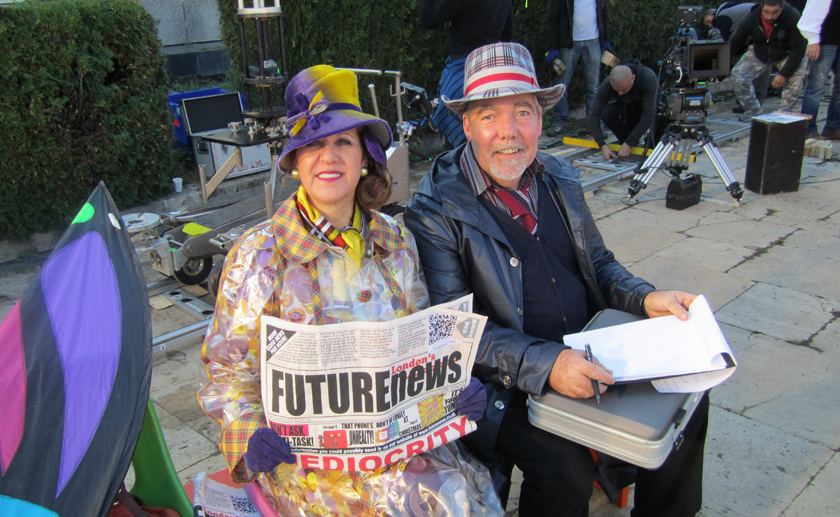 Pat Rushin on set in Carol Park in Bucharest