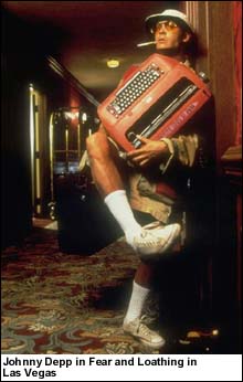 Q: You said "Imagination is the thing that allows us to control the world around us." In Fear and Loathing, it seems the hallucinations are in control. The truth of the matter is, I haven't taken any of those drugs. My drug intake is: coke twice, hash and pot a few times, and amyl nitrate once. That's it. I can do all that stuff without drugs, which has always intriuged me. I thought that when people were taking acid and peyote they were suddenly seeing the world in this extraordinary way. I was hoping that they would learn to do that without having to rely on the chemicals. I've been lucky because I saved all my money. The we talk about drugs now is crazy. The drug I like most is strong Italian coffee. That's an incredibly powerful drug. When coffee was introduced to this country, coffee houses were like the hash houses of Amsterdam - they were drug dens. People knew how dangerous coffee was back then. It's a dangerous drug, folks. Drugs alter things. They alter you, in different ways. You have to decide what you want to do and how much you want to be altered. How much of it's useful, how much of it's negative. That's the choice. The difference is that some drugs are legal and some are illegal and it tends to be bureaucrats who make those choices. Some drugs support Swiss multinationals and some support Colombian peasants. You Decide. You can make the choice. In a sense, the film does that at the end. The last speech is about that - the part about acidheads thinking you can buy peace and understanding for $3 a hit. Well, you can't. You have to work at it. We live in an age where we buy everything. You shouldn't always buy. Sometimes you have to experience. The speech is about individual responsibility. Nobody is minding the light at the end of the tunnel. Just you and me. There is a point to this film. By going through all these extreme experiences, the character hopefully comes out a wiser person, but it's still all about him choosing what he wants to do.