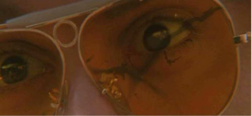 Depp was given complete access to every memento the writer saved from his 1971 trip to Las Vegas. The actor read through the writer's notebooks (which included an unpublished chapter entitled, "The Coconut Scene," which Gilliam placed in the film) only to realize that "the freakiest thing was that it was all real, that the reality was as insane as the book." He rummaged through Thompson's wardrobe at the time: Hawaiian shirts, a patchwork jacket, a safari hat, and a silver medallion given to him by Acosta. Thompson graciously allowed Depp to wear it all in the film. Thompson even let Depp borrow the red shark: the giant fire engine red convertible that the author took to Vegas, which was also used in the film. All of these items only enhance Depp's performance. In the film, he has literally transformed into Duke/Thompson, complete with the man's unusual bow-legged walk, sweeping arm movements, mumbling speech pattern, and the trademark Dunhill cigarettes in a holder between clenched teeth. It's an incredible performance that transcends simple mimicry. Depp's research culminated after a week when Thompson shaved almost all of the actor's hair for the film and entrusted him with the very car he used in the trip. The actor soon became Thompson's roadie and in charge of security for The Proud Highway (a collection of Thompson's letters) book tour. Filmmaker Alex Cox was hired to direct the film on January 1997. Judging by his past efforts, films like Repo Man (1983) and Straight to Hell (1987), Cox was no stranger to the same kind of Gonzo sensibilities evident in Thompson's books. However, Cox's idea of the film seemed to differ from everyone else involved. Johnny Depp remembers that "Alex had some dream that he could make Thompson's work better. He was wrong. He had this idea about animation in the film." Cox and his writing partner, Tod Davies, met Thompson at his home and it was at this point that Cox expressed his desire to incorporate animation in the film. Thompson took offense to his book being reduced to a cartoon and promptly kicked Cox and Davies out of his home. After Cox was fired, the film's producers approached Terry Gilliam's agent. There was an air of desperation because, as Patrick Cassavetti, one of the film's producers, put it, "the option on the book was about to expire. Johnny Depp had been waiting around overlong and we had another project going that we had to launch in 1998." Terry Gilliam seemed like the perfect choice to direct this film. The theme of insanity had always figured into his films but has since taken a more prominent role with his last couple of projects. As a result, Fear and Loathing completes an informal trilogy based on madness that includes The Fisher King (1991) and Twelve Monkeys (1995). When Gilliam had first read Fear and Loathing in Las Vegas back in 1971, he "immediately identified with what Hunter was saying. I'd left the States to move here for the very same reasons that Fear and Loathing was written -- that feeling the ideals of the '60s had died and that it was all fucked. I was so angry I was going to start throwing bombs. So when I read the book it was like, 'Jesus! He's got it! That's exactly how the fuck I feel!'" Gilliam enjoyed the book but didn't think about it for years afterwards. Ralph Steadman, who illustrated the book, was a good friend of Gilliam and began to bug him over the years to do a film version of Fear and Loathing. In 1989, Gilliam remembers a "script turned up which briefly got me excited about the book again, but I was busy with another project and I ultimately decided that the script didn't capture the story properly." However, in 1997, when Gilliam got the call from Laila Nabulsi, one of the film's producers, to direct, the time seemed to be right. Gilliam said in an interview, "she sent me a script, and it reminded me of how funny and good the book was. I didn't really care for the script, but it inspired me to go back and read the book again." And so, Gilliam scrapped Cox and Tod Davies' screenplay and had only ten days to write another. Gilliam enlisted the help of Tony Grisoni (Queen of Hearts) and together they hammered out a screenplay at Gilliam's home in London, England in May of 1997. As Grisoni remembers, "I'd sit at the keyboard, and we'd talk and talk and I'd keep typing." Gilliam felt that the structure of the film should be organized much in the same way as the book: "We start out at full speed and it's WOOOO! The drug kicks in and you're on speed! Whoah! You get the buzz -- it's crazy, it's outrageous, the carpet's moving and everybody's laughing and having a great time. But then, ever so slowly, the walls start closing in and it's like you're never going to get out of this fucking place. It's an ugly nightmare and there's no escape. And then they get out into the desert and it's light again. But it's a really rough ride for a lot of people to climb inside that head." Gilliam also felt that the more surreal parts of the book could be transferred onto film if done right. For example, the imaginary bats that Duke sees on the highway at the beginning of the book was one such passage the director felt could be translated into visual terms. "Right at the start I thought, 'Well, we can't show them in the sky, we can only show them inside Duke's eyeball. So in the film we push in really tight on one of his eyes, where you can see these reflections of bats flapping around. We then cut to a wide shot that shows Duke waving his arms at nothing. I wanted to some how convey that this was an internal problem."