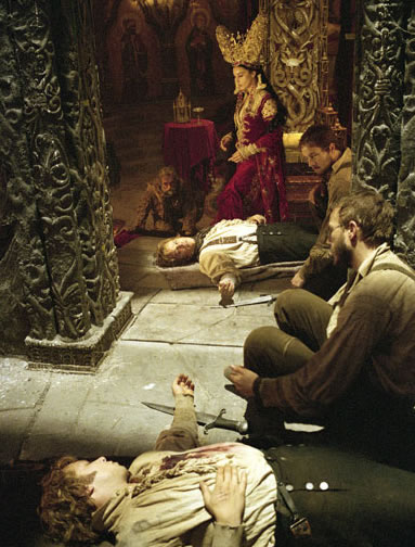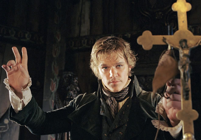Yeah, Matt plays the pragmatist. He's the cynic, very practical, he's the one that keeps them fed basically, he's a conman. The character Heath plays is the dreamer, the scholar, the one who's dragged along reluctantly and who then finds this truly enchanted world - it's everything he has dreamed about coming true. And he becomes this momentum that sweeps the two along into this world. I cast them opposite their types really because Matt is normally more of an introspective character. He's quiet yet in this one he's the brash one, the ballsy one, the asshole basically. And Heath who has been stuck playing the straight heroic role in The Four Feathers, A Knight's Tale - he gets to play the comic, neurotic, outrageous character. I think they work brilliantly, the two of them. The bonding and appearing to be brothers, that worked beautifully they just clicked the two of them. They're very different types of people, but it worked better than one could hope. I think this is one of the strong points of the movie. You really believe these guys. And they're surprising - they're not what you have seen before. To me the point of doing these things is to surprise the audience. Heath's is a physical performance. It's all twitches and turns and he's like rubber at times. And Matt has had to walk differently... we had Matt doing tango lessons. We had him doing everything to carry himself differently, to become a very different person. And that's the thing I'm really pleased with.