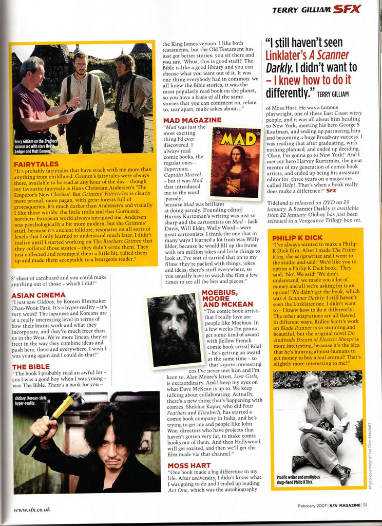 In an interview with UK-based magazine SFX, Gilliam spoke about his