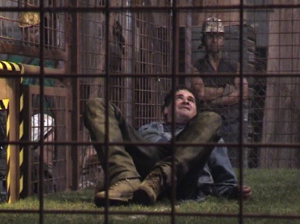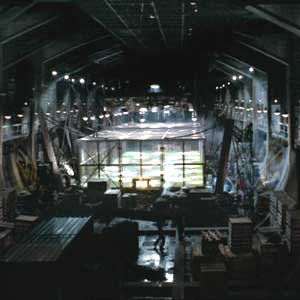 of a cargo liner. Within the cargo liner is a massive cage with turf. Where
