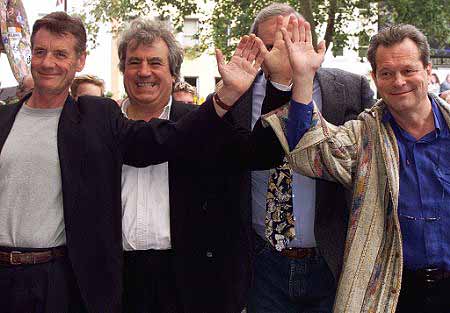 Terry Gilliam is still planning for a Spring 2000 shoot for his likely next movie, The Man Who Killed Don Quixote, which would give an expected release date of Autumn 2001. In fact, to keep the project on track, Gilliam went out again in mid-October to Spain, where he has chosen to shoot on location. With Johnny Depp and Jean Rochefort already announced as Gilliam's choice as cast members, it has been revealed, thanks to deadmanjones's perusal of Ceefax, that Ian Holm, Jonathan Pryce and Madeleine Stowe are also in line for roles, all three of whom have previously worked for Gilliam. 2. Terry Gilliam plays major role in Python Night Python Night hit tv screens across the UK on Saturday 9 October on BBC2, and Terry Gilliam played a full role. Readers of the New Yorker article published when Fear and Loathing was released will recall Gilliam quoted as being quite dismissive about the prospect of a Python reunion, yet since there was a gap in his diary, he decided to get involved. Commented Gilliam, “There is nothing more embarrassing than watching a gang of middle-aged old farts reliving the halcyon days.” The four-hour Python fest kicked off with new material, which also featured throughout the night - Gilliam's best moment was as a Mastermind contestant whose range of answers was limited. A single new Gilliam animation was shown, which used computer techniques rather than Gilliam’s familiar cutout animation style. There were a number of documentaries - a general history presented by comedian Eddie Izzard, a tour of some Flying Circus locations, and a tribute to Python songs. The centrepiece of the evening was a showing of Life of Brian, which reminded viewers of Graham Chapman’s moving lead role as Brian. The evening finished with a historic interview with the Pythons by Peter Sissons - more on that below... Python group member Eric Idle contributed to the documentaries and recorded a monologue - yet did not join the others in the new sketches. Terry Jones was sympathetic to Idle’s partial co-operation in the BBC reunion. He said, “He actually put a lot of work into the stage stuff and when we all backed out he quite reasonably felt he’d wasted all that time and all that credibility.” 3. Peter Sissons chairs historic interview of Pythons The last item featured in Python Night was a new studio interview of the five Pythons that survived long enough to make the 30th anniversary. This was heralded as the first time in 25 years that they had all been interviewed together. It was a most revealing interview, and the Dreams editorial decision is not to put any information of the transcript here since, if you are to see Python Night in the near future, I would not want to spoil the majesty of the occasion for you. Terry Gilliam, Terry Jones, John Cleese and Michael Palin were all in the studio with senior BBC newsman Sissons. Eric Idle was unable to attend in person, yet he spoke via satellite.
